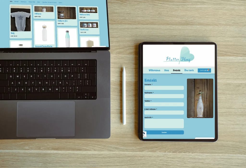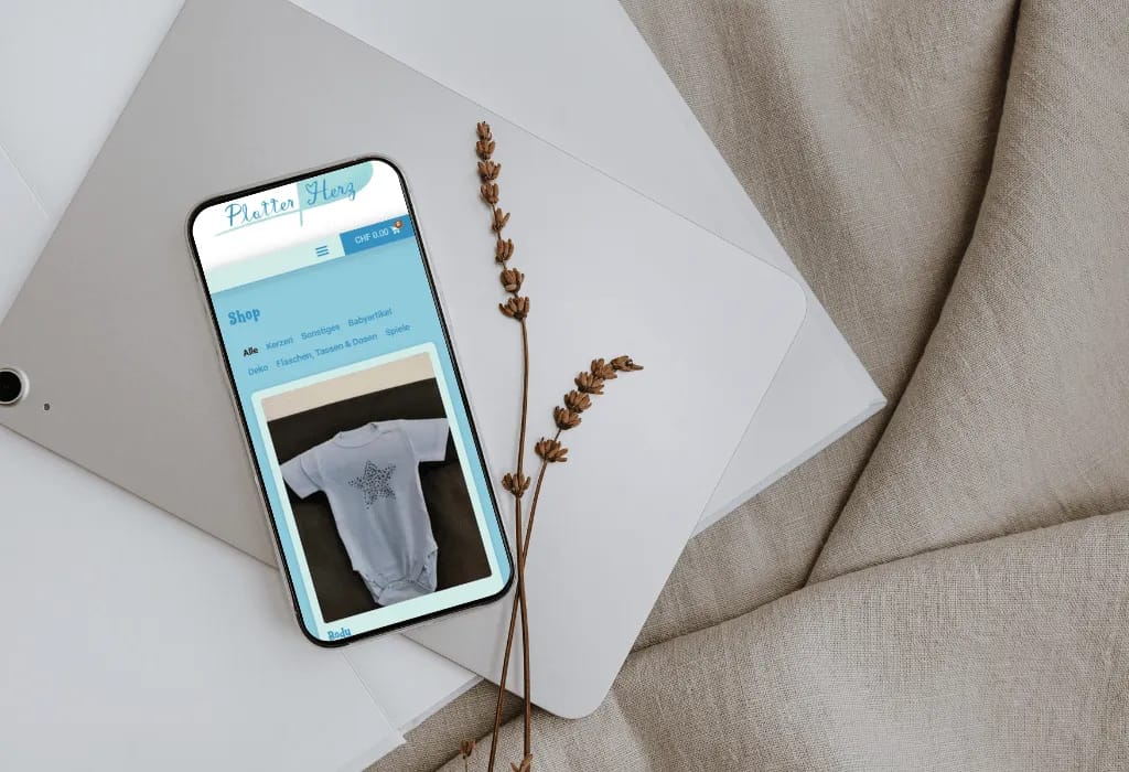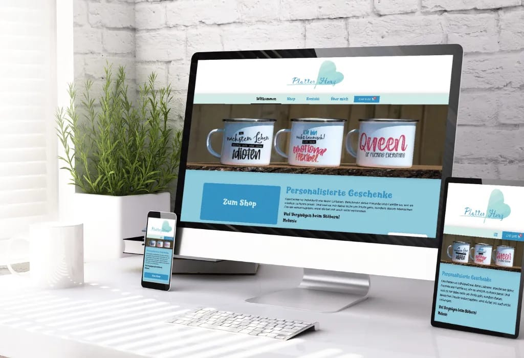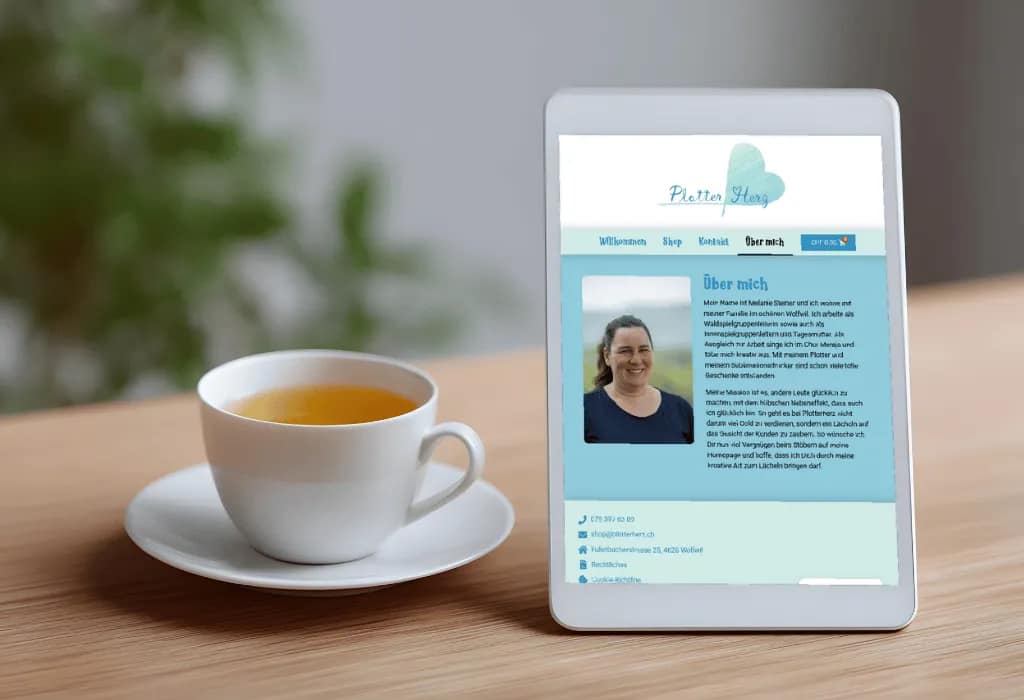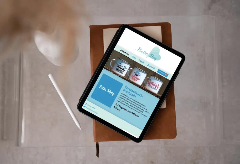 Ein einladender Onlineshop für personalisierte Geschenke, mit Fokus auf benutzerfreundlicher Navigation und authentischem Markenauftritt. Shop-, Kontakt-, Über-mich- und Rechtliches-Bereich ermöglichen einfaches Finden und Bestellen individueller Artikel.